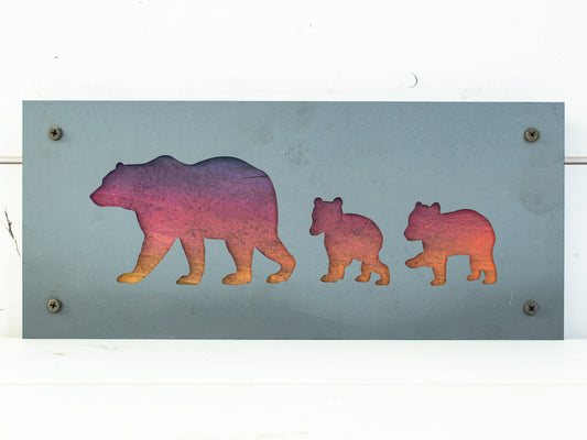 Bear Family Wood and Metal Wall Decor, Metal Art, Bears