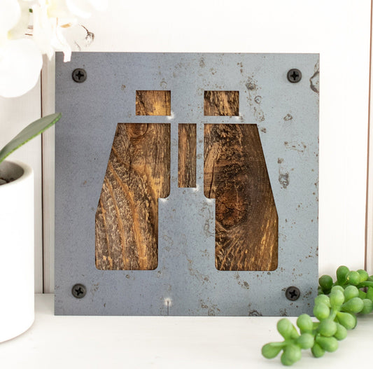 Campfire Silhouette Metal and Barn Wood Home Decor, Sustainable Gifts