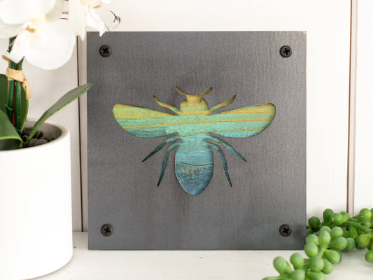 Honey Bee Metal and Wood Home Decor, Small Sustainable Gift
