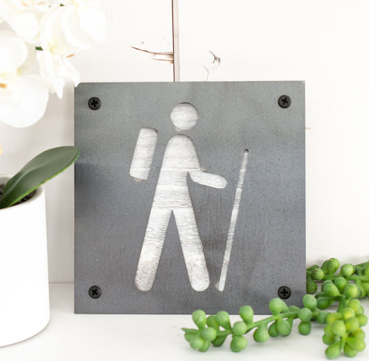 Hiking Sign, Hiker Art, Metal Hike Decor