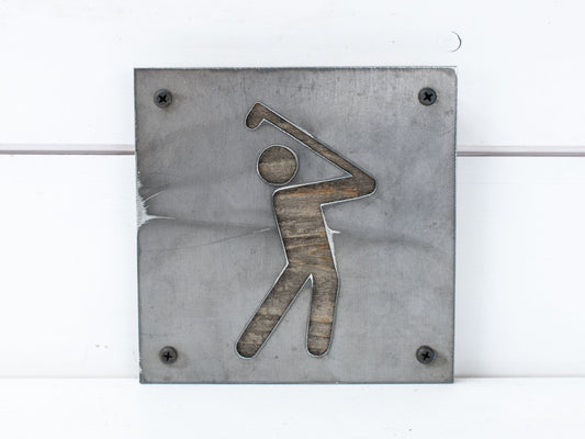 Golf Sign, Golf Course Pictograph, Metal and Wood Wall Decor