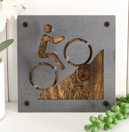 Mountain Biker Pictograph Wall Art, Mountain Biking Decor