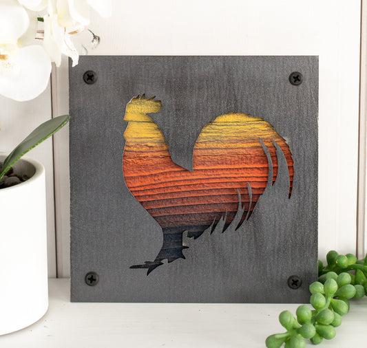 Rooster Farmhouse Wood and Metal Home Decor, Reclaimed Wood Art