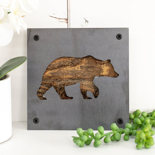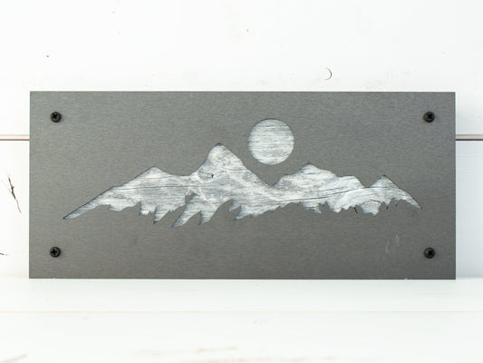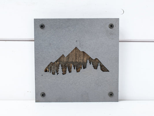 Mountain Wood and Metal Home Decor, Woodland Nursery, Cabin Decor