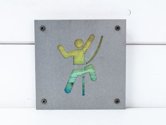 Rope Rock Climber Metal Art Sign; Rock Climbing
